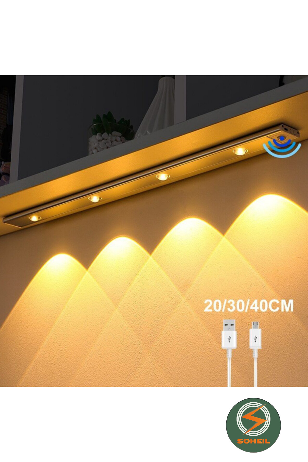 ناموجودچراغ زیر کابینتی شارژی با سنسور هوشمند و سه حالت نوردهی